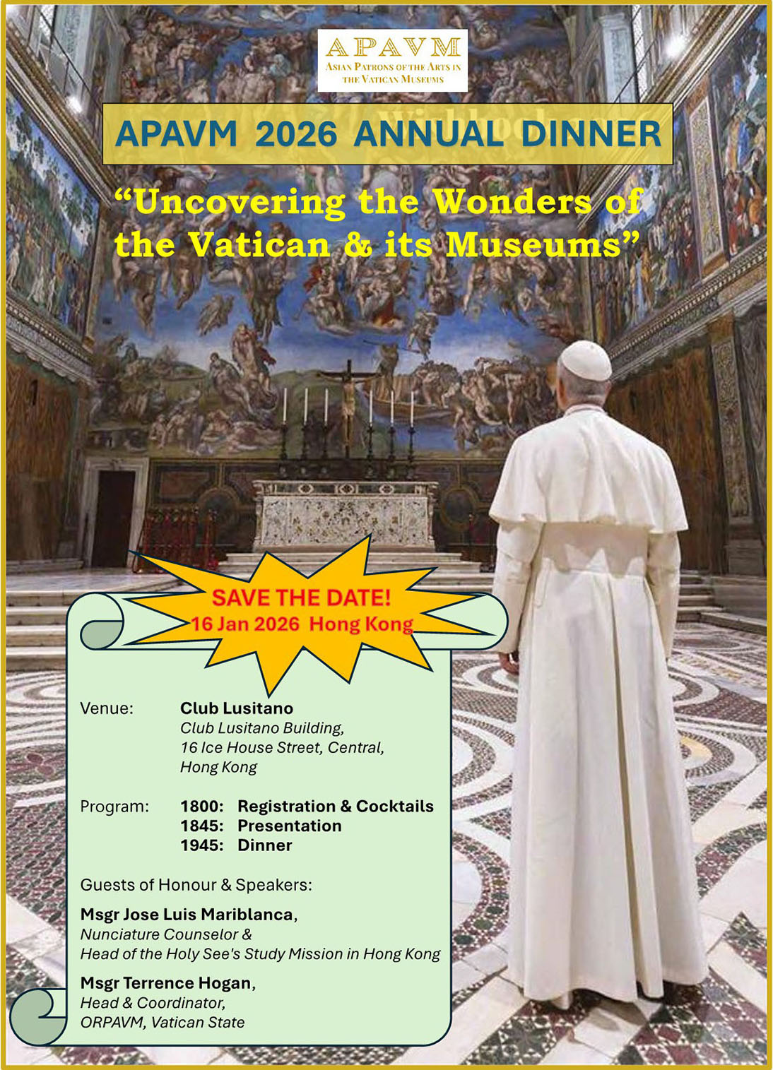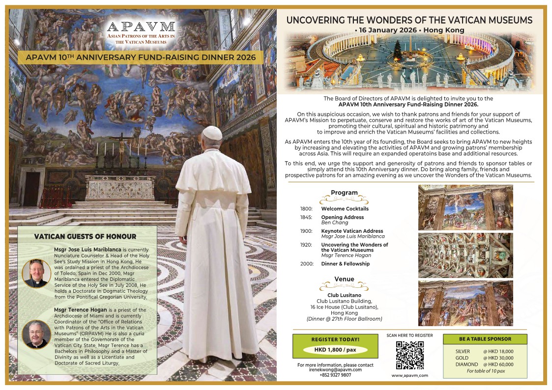 This prestigious event will be held at two locations with distinguished Vatican guests: